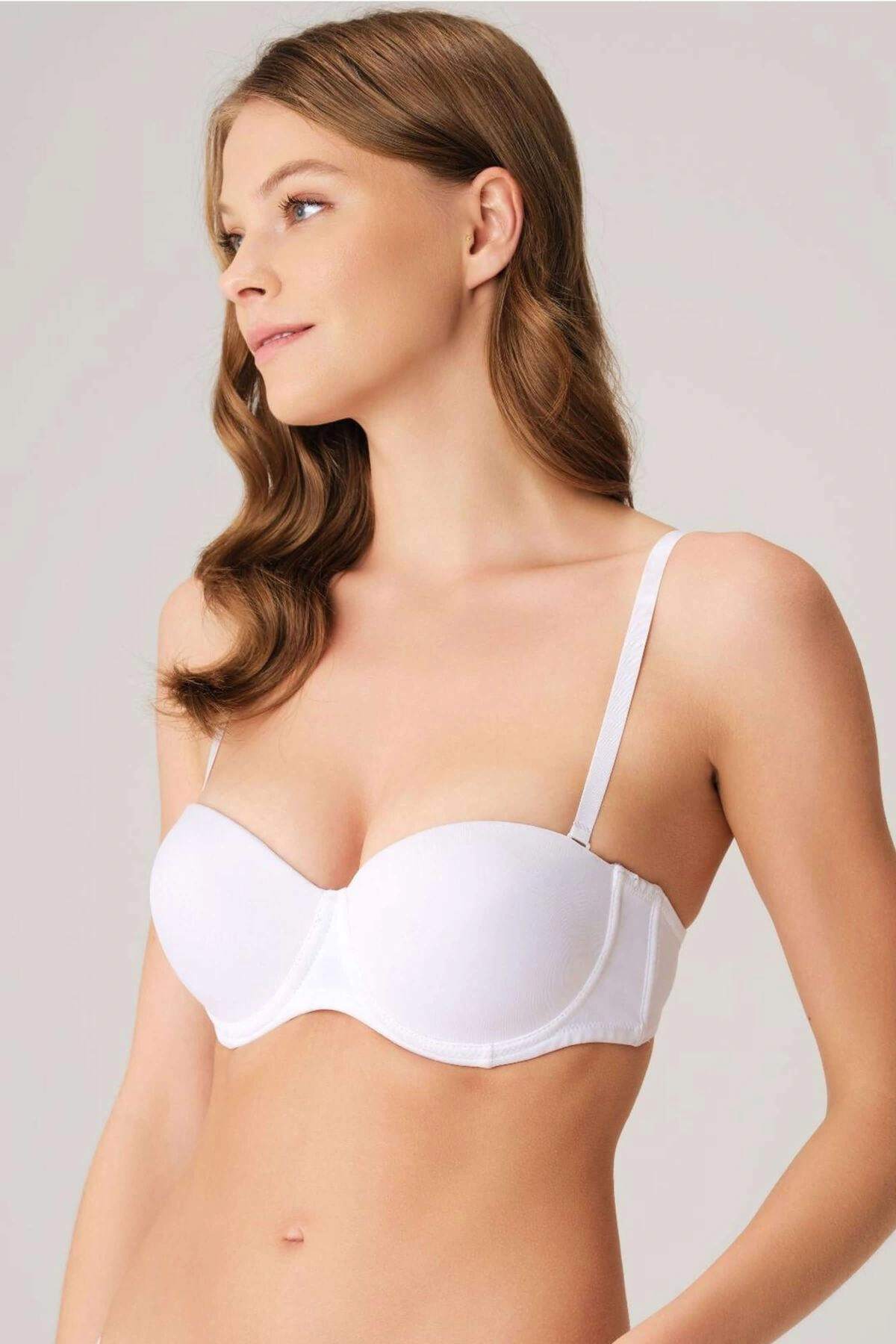 • Balenli Destekli Dolgulu Askısız Straplez Günlük Klasik T-shirt Sütyeni