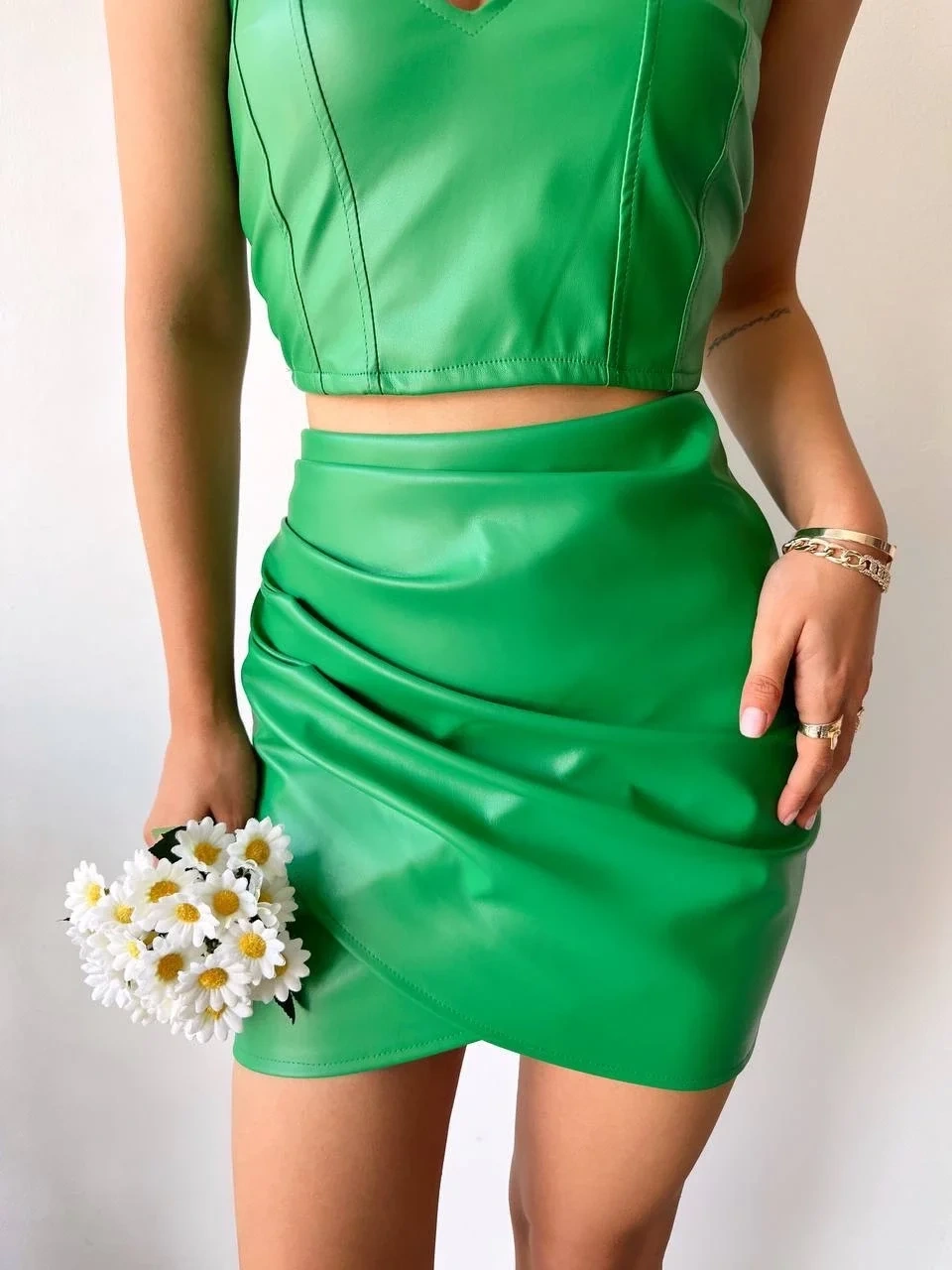 Drapeli deri etek yeşil s24771--Derinin şıklığı ile Drapeli Deri Etek Yeşil S24771, kadınların gardırobunda fark yaratacak bir parça. Kaliteli deri malzemesi ve detaylarıyla göz kamaştıran bu etek, şıklığı ve rahatlığı bir arada arayanların tercihi olacak. Ürün Özellikleri: Yüksek kaliteli deri malzeme Drapeli detaylar Yeşil renk seçeneği Bel kısmında ayarlanabilir detay Sezonun trendlerine uygun tasarım