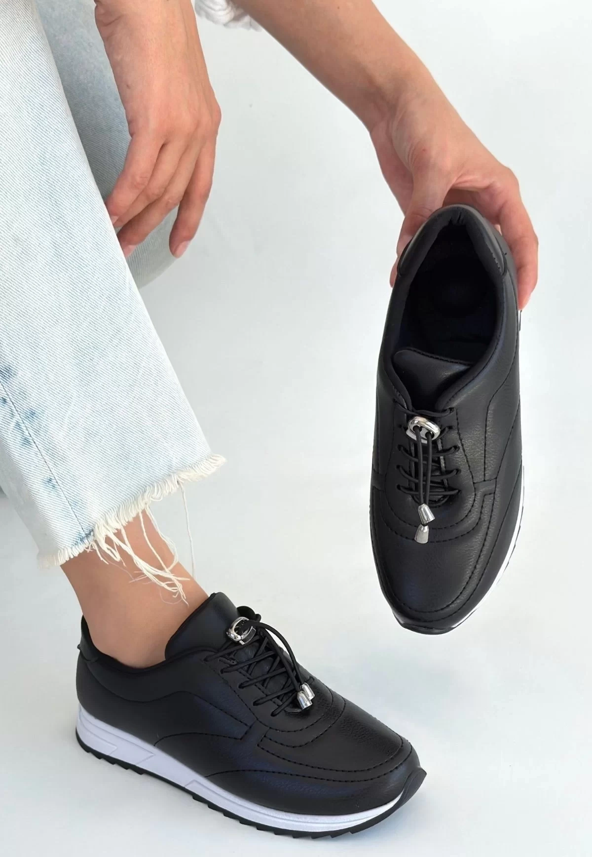 • Finna Siyah Cilt Bağcıklı Spor Ayakkabı