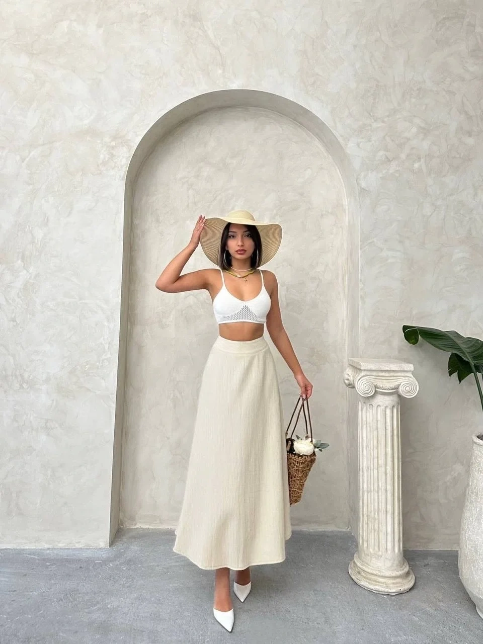 Uzun astarlı etek-- uzun astarlı etek, şıklığı ve rahatlığı bir arada sunar. Ürün, kaliteli kumaşı ve modern tasarımıyla dikkat çeker. Ürün özellikleri: Kadın giyim kategorisinde yer alır. Uzun boyu ile her mevsimde kullanıma uygundur. Astarlı yapısı sayesinde konforlu bir deneyim sunar. Bel kısmındaki lastik detayı sayesinde her bedene kolaylıkla uyum sağlar. Çeşitli renk seçenekleriyle her zevke hitap eder. Günlük kullanıma uygun olduğu gibi özel davetlerde de şık bir seçenektir. uzun astarlı eteğiyle tarzınızı yansıtın ve her ortamda farkınızı ortaya koyun.