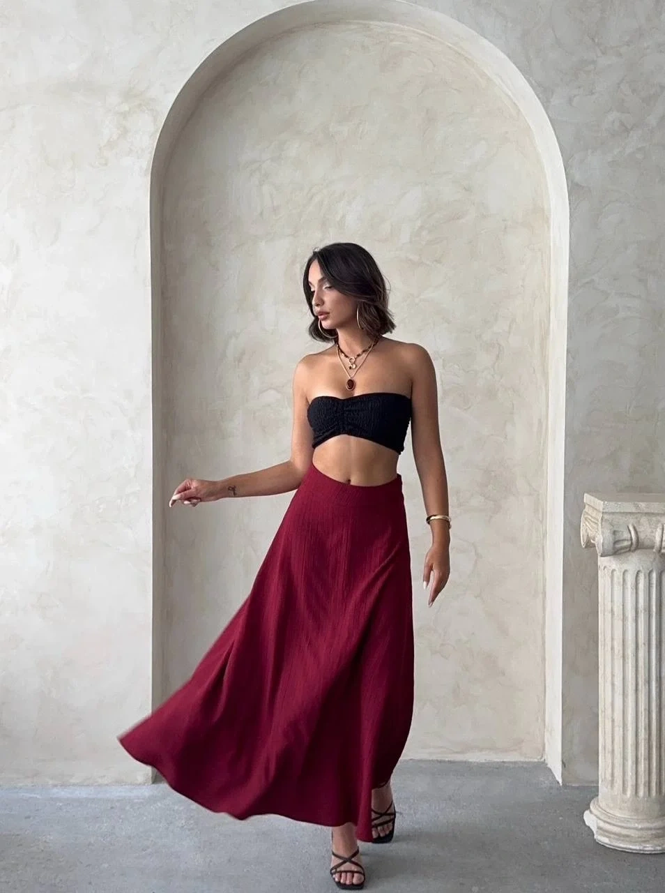 Uzun astarlı etek s255043--Kadınların şıklığına şıklık katacak uzun astarlı etek, gardırobunuzun vazgeçilmezi olmaya aday! Ürün Özellikleri: Kadın Giyim kategorisinde yer alan şık tasarıma sahip bir etektir. Uzun astar sayesinde rahat ve konforlu bir kullanım sunar. Metalik düğme detaylarıyla modern ve şık bir görünüm sağlar. Yüksek bel kesimi ile vücudu saran bir kesime sahiptir. Farklı beden seçenekleri ile herkesin tarzına uygun bir seçenek sunar. İster günlük şıklıkta, ister özel davetlerde tercih edebileceğiniz bir parçadır.