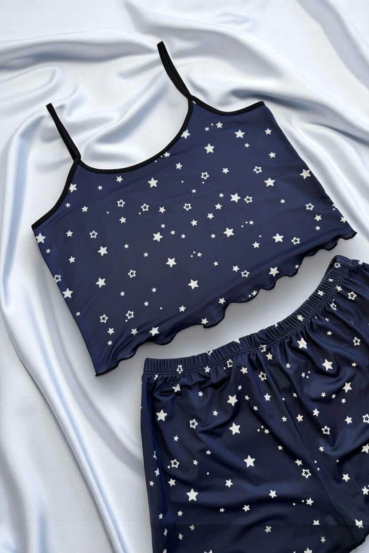 Yıldız Desenli Lacivert Askılı Şortlu Gecelik